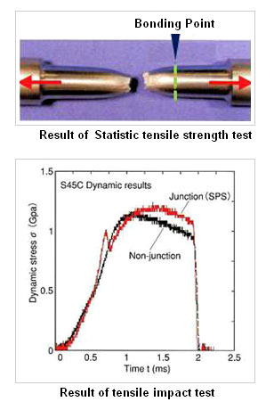Amongst SPS bonding, that between solid materials without involving any powder is the most popular method. But it is also possible to perform bonding of powders, sheet bonding between thin materials, composition gradient bonding utilizing gradient construction of composition,